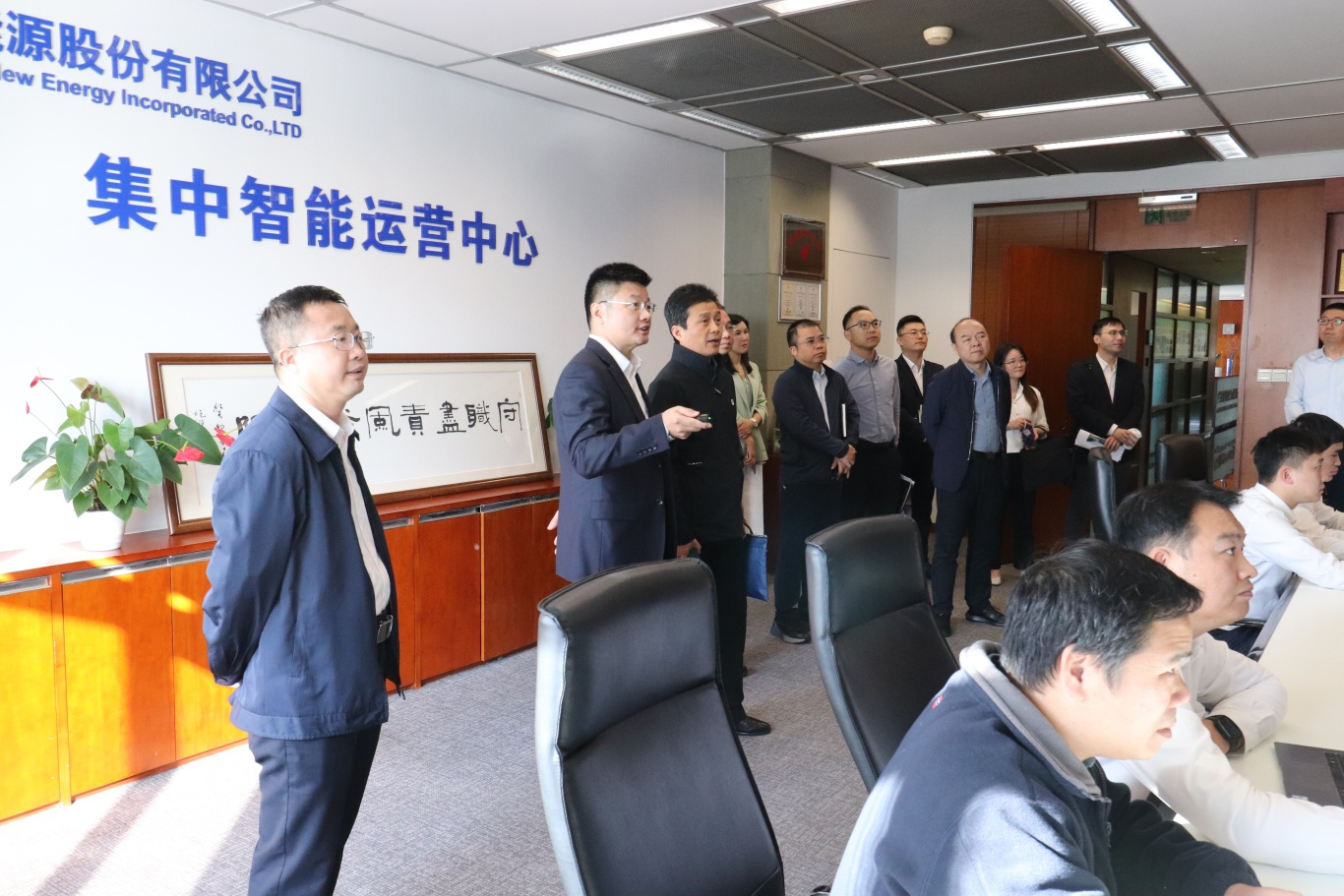 王玉印一行首先参观广州发展新能源集团集中智能运营中心,了解集团新能源业务发展、安全运营管理、物业小区充电服务和监管解决方案等,随后开展座谈交流。