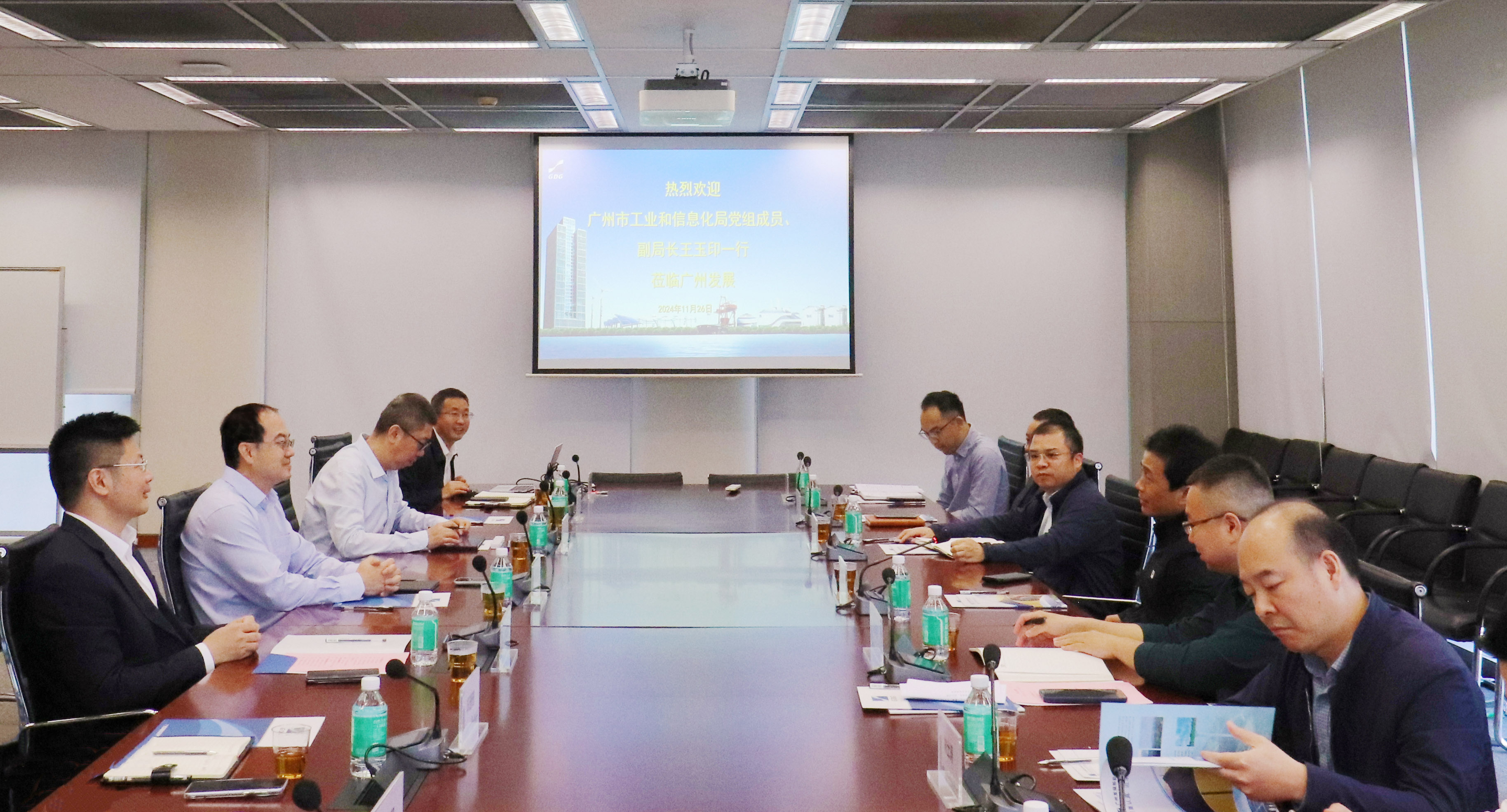 2024年11月26日,广州市工业和信息化局党组成员、副局长王玉印率队调研广州发展,广州发展总经理吴宏,市工业和信息化局、广州供电局、曙光云计算股份集团等单位有关领导,新能源集团主要领导及相关部门负责人参加座谈交流。
